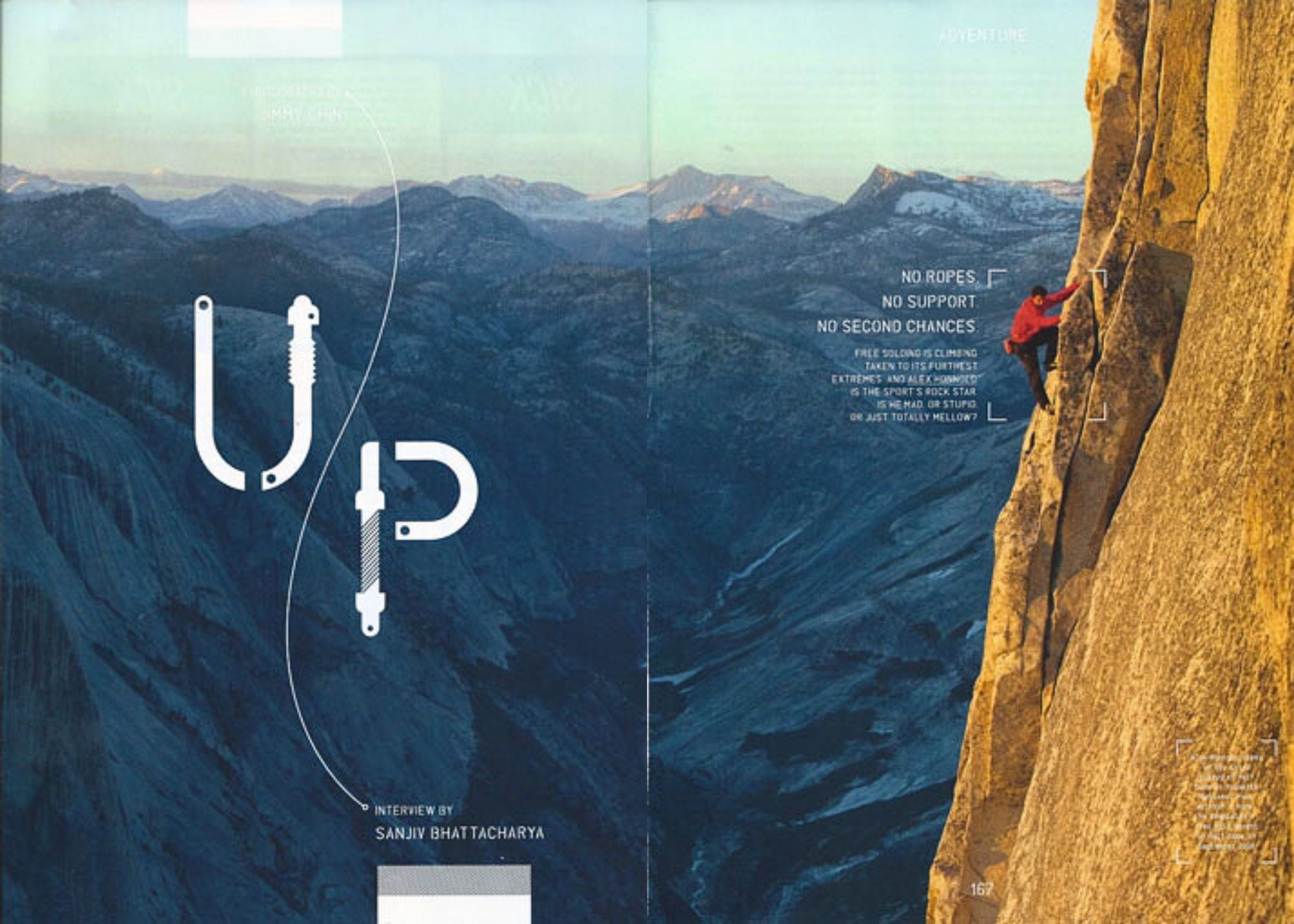 Below are two pieces that came out of that day. The first is the Esquire piece, the second is a coda about my own fish-out-of-water experience in his world. The running theme is a fear of dying, something that Honnold appears to have conquered. But not me.