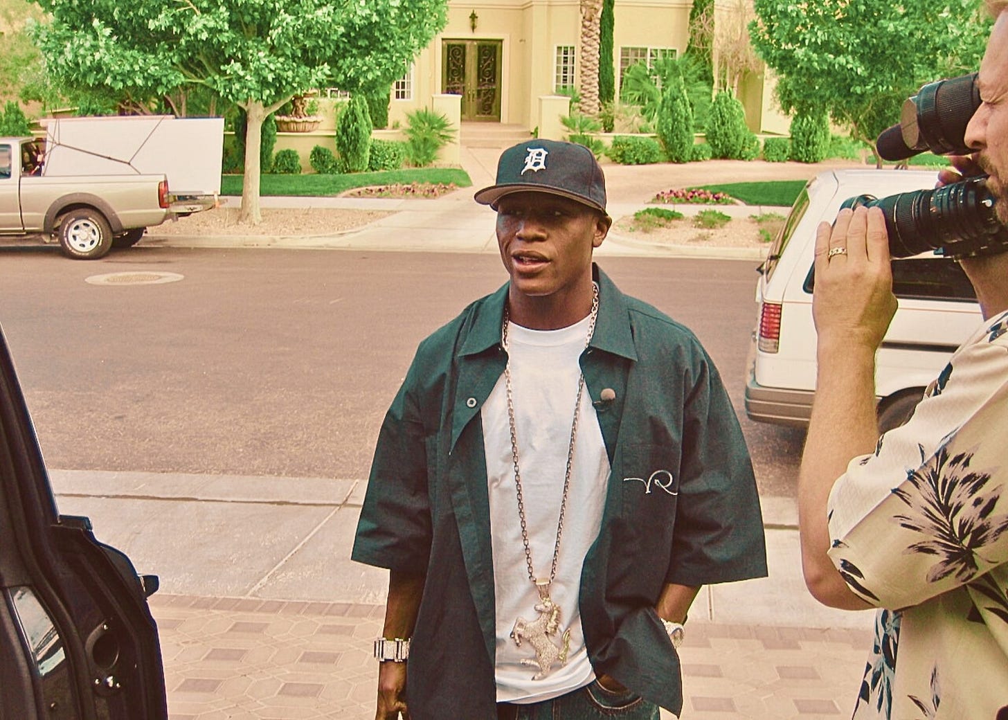 I got my time with Floyd in the end. The instructions came in the morning: head to some dingy strip mall downtown and look for a door marked Philthy Rich. Floyd was inside on a barstool in the middle of the office, watching the game and getting a fade. It was just me, him and his barber.