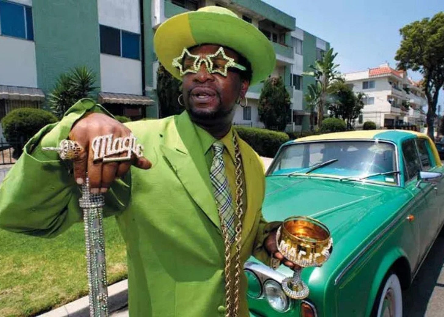 In a pumpkin suit, flashing rings and twinkling cherry gators, Pimp Chicago delicately tweaked the tilt of his strawberry hat in a wing mirror. A bony five-two, he put the imp in ‘pimp’, an elfin dandy, dressed for a tap dance.